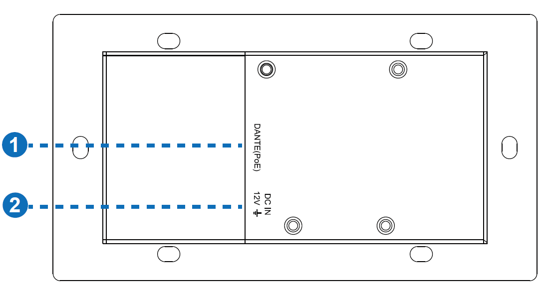 1x DANTE [RJ45 connector, PoE] [Digital audio in/out, PCM 2CH 44.1K-96KHz 16/24Bit]